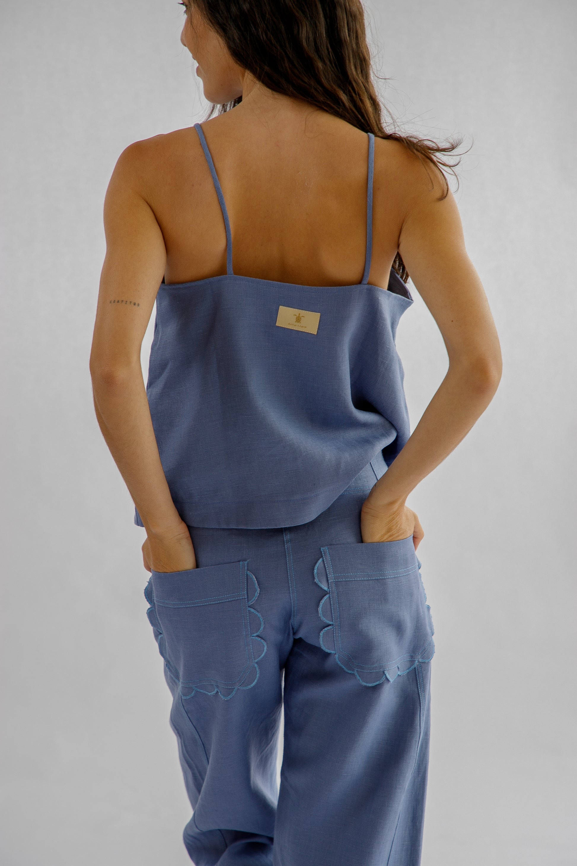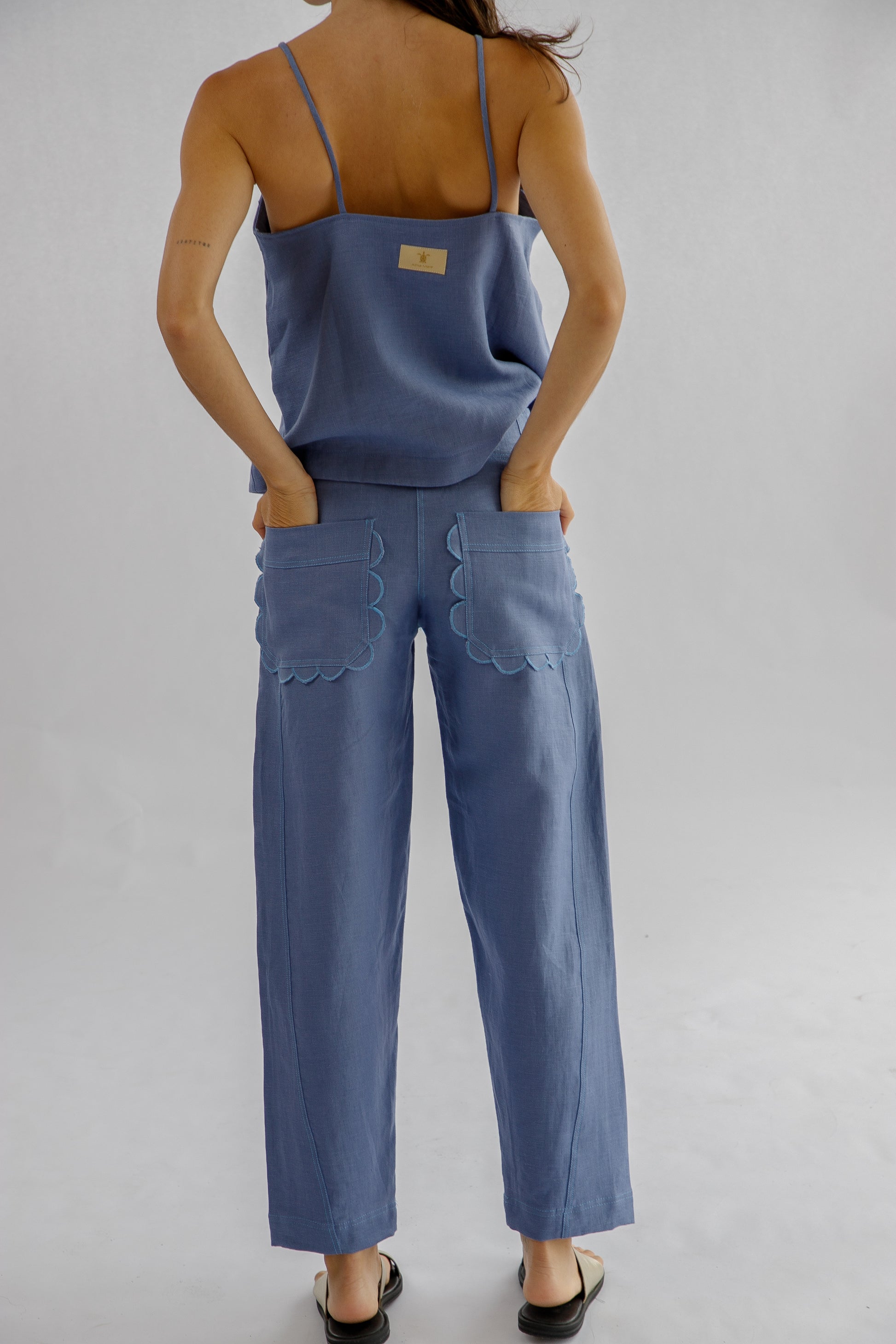 Este pantalón resalta por el encanto de sus bolsillos con un delicado borde festoneado, que añaden un toque de originalidad artesanal. Su corte relajado y el lino natural lo hacen una pieza esencial para un estilo cómodo y distinguido.